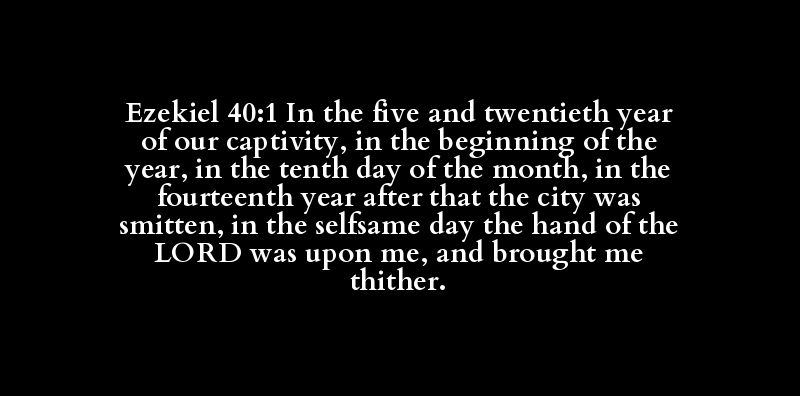 Ezekiel 40:1 In the five and twentieth year of our captivity, in the beginning of the year, in the tenth day of the month, in the fourteenth year after that the city was smitten, in the selfsame day the hand of the LORD was upon me, and brought me thither.