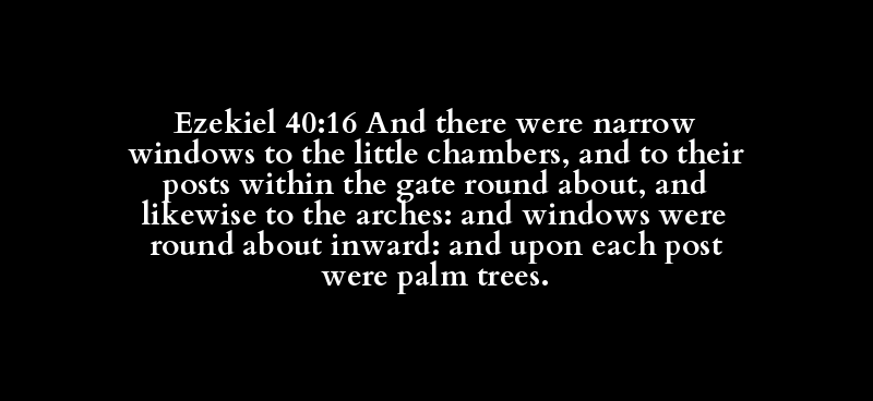 Ezekiel 40:16 And there were narrow windows to the little chambers, and to their posts within the gate round about, and likewise to the arches: and windows were round about inward: and upon each post were palm trees.