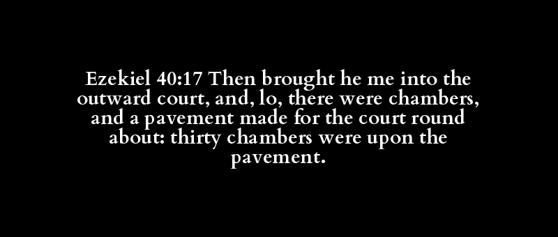 Ezekiel 40:17 Then brought he me into the outward court, and, lo, there were chambers, and a pavement made for the court round about: thirty chambers were upon the pavement.