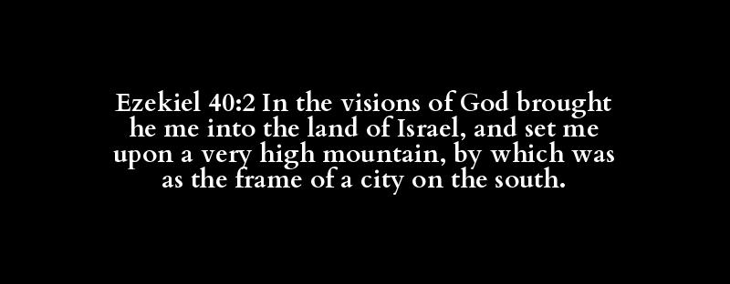Ezekiel 40:2 In the visions of God brought he me into the land of Israel, and set me upon a very high mountain, by which was as the frame of a city on the south.