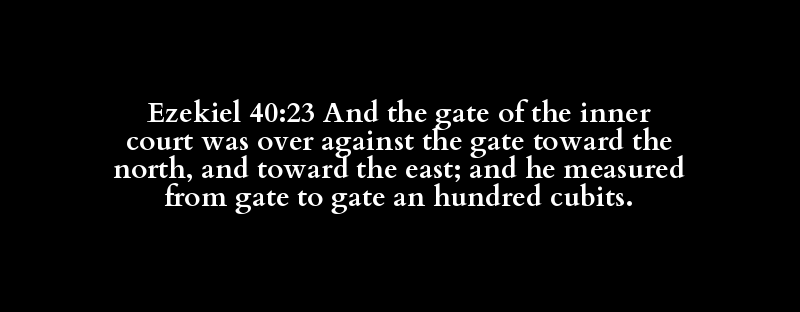 | שַׁעַר | פְּנִימִי | חָצֵר | שַׁעַר | צָפוֹן | קָדִים | מָדַד | שַׁעַר | שַׁעַר | מֵאָה | אַמָּה |