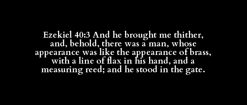 Ezekiel 40:3 And he brought me thither, and, behold, there was a man, whose appearance was like the appearance of brass, with a line of flax in his hand, and a measuring reed; and he stood in the gate.