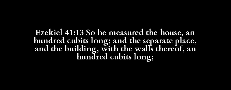 Ezekiel 41:13 So he measured the house, an hundred cubits long; and the separate place, and the building, with the walls thereof, an hundred cubits long;