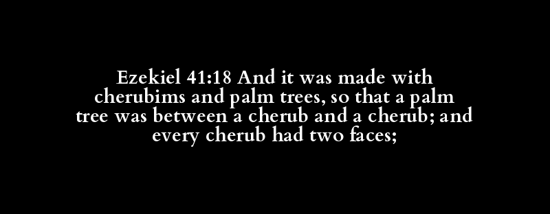 Ezekiel 41:18 And it was made with cherubims and palm trees, so that a palm tree was between a cherub and a cherub; and every cherub had two faces;