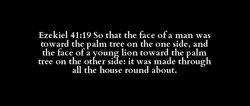 Ezekiel 41:19 So that the face of a man was toward the palm tree on the one side, and the face of a young lion toward the palm tree on the other side: it was made through all the house round about.