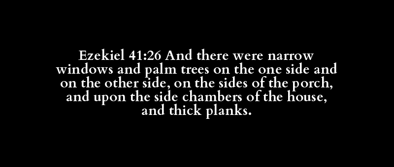 Ezekiel 41:26 And there were narrow windows and palm trees on the one side and on the other side, on the sides of the porch, and upon the side chambers of the house, and thick planks.