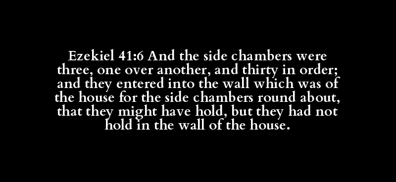 Ezekiel 41:6 And the side chambers were three, one over another, and thirty in order; and they entered into the wall which was of the house for the side chambers round about, that they might have hold, but they had not hold in the wall of the house.
