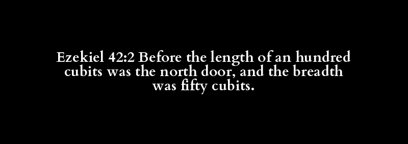 Ezekiel 42:2 Before the length of an hundred cubits was the north door, and the breadth was fifty cubits.