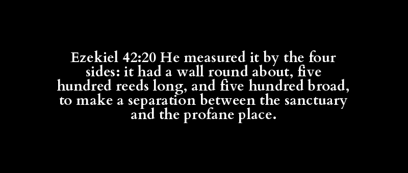 Ezekiel 42:20 He measured it by the four sides: it had a wall round about, five hundred reeds long, and five hundred broad, to make a separation between the sanctuary and the profane place.