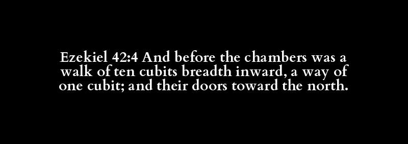 Ezekiel 42:4 And before the chambers was a walk of ten cubits breadth inward, a way of one cubit; and their doors toward the north.