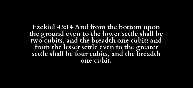 Ezekiel 43:14 And from the bottom upon the ground even to the lower settle shall be two cubits, and the breadth one cubit; and from the lesser settle even to the greater settle shall be four cubits, and the breadth one cubit.