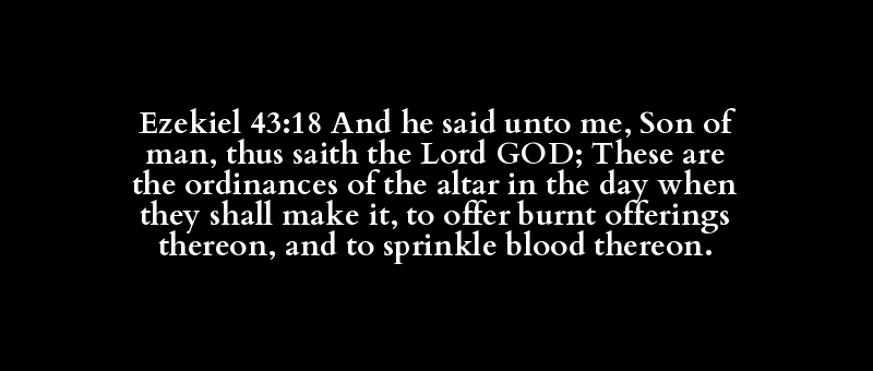Ezekiel 43:18 And he said unto me, Son of man, thus saith the Lord GOD; These are the ordinances of the altar in the day when they shall make it, to offer burnt offerings thereon, and to sprinkle blood thereon.