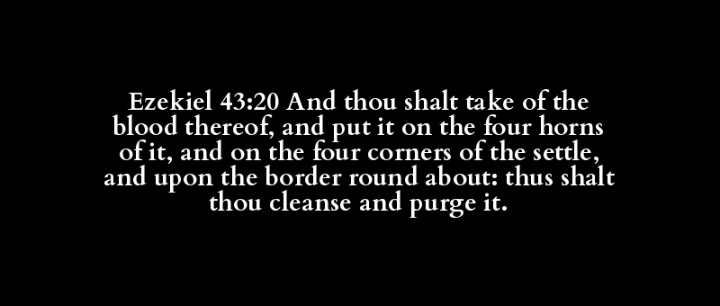 Ezekiel 43:20 And thou shalt take of the blood thereof, and put it on the four horns of it, and on the four corners of the settle, and upon the border round about: thus shalt thou cleanse and purge it.