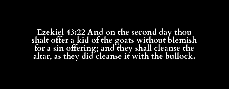 Ezekiel 43:22 And on the second day thou shalt offer a kid of the goats without blemish for a sin offering; and they shall cleanse the altar, as they did cleanse it with the bullock.