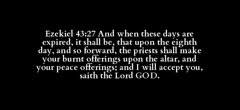 Ezekiel 43:27 And when these days are expired, it shall be, that upon the eighth day, and so forward, the priests shall make your burnt offerings upon the altar, and your peace offerings; and I will accept you, saith the Lord GOD.