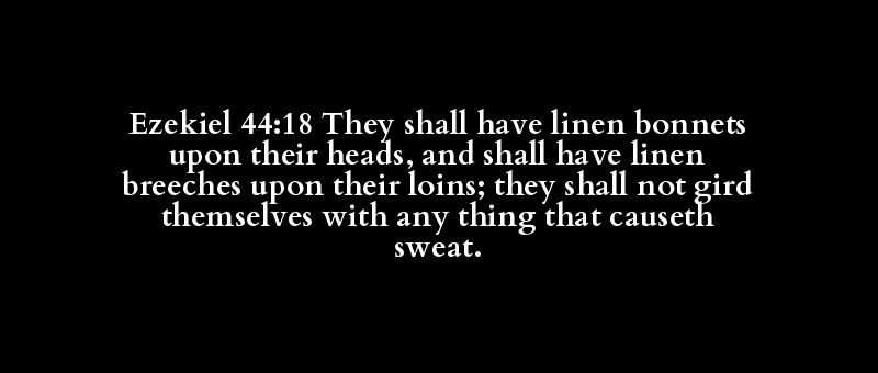 Ezekiel 44:18 They shall have linen bonnets upon their heads, and shall have linen breeches upon their loins; they shall not gird themselves with any thing that causeth sweat.