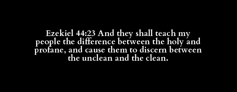 Ezekiel 44:23 And they shall teach my people the difference between the holy and profane, and cause them to discern between the unclean and the clean.