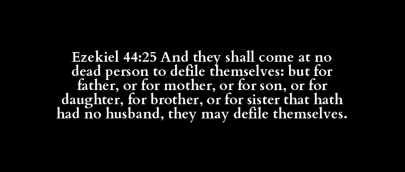 Ezekiel 44:25 And they shall come at no dead person to defile themselves: but for father, or for mother, or for son, or for daughter, for brother, or for sister that hath had no husband, they may defile themselves.