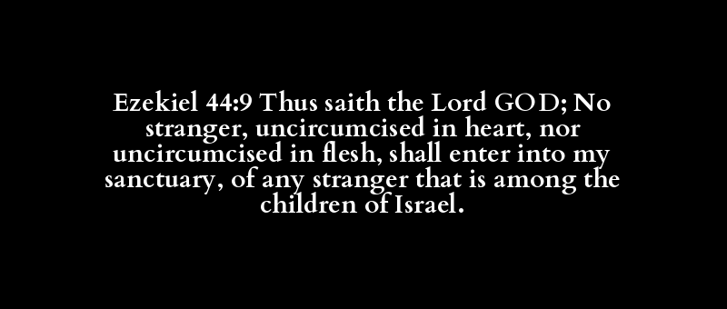 Ezekiel 44:9 Thus saith the Lord GOD; No stranger, uncircumcised in heart, nor uncircumcised in flesh, shall enter into my sanctuary, of any stranger that is among the children of Israel.
