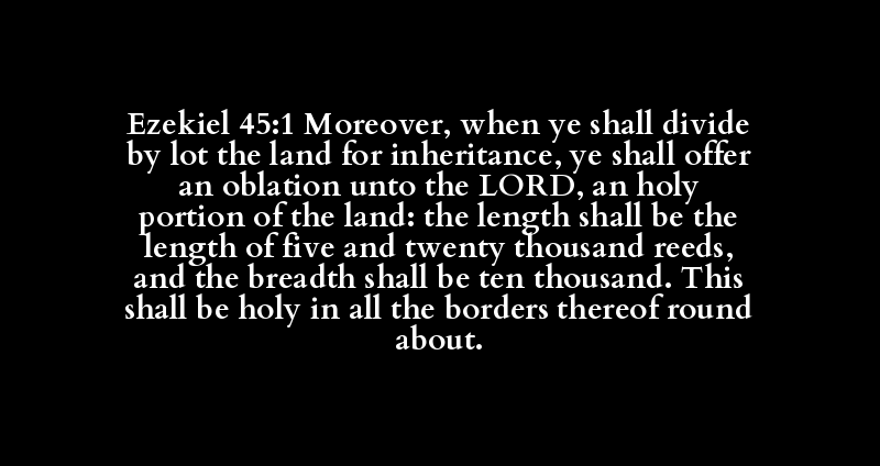 Ezekiel 45:1 Moreover, when ye shall divide by lot the land for inheritance, ye shall offer an oblation unto the LORD, an holy portion of the land: the length shall be the length of five and twenty thousand reeds, and the breadth shall be ten thousand. This shall be holy in all the borders thereof round about.