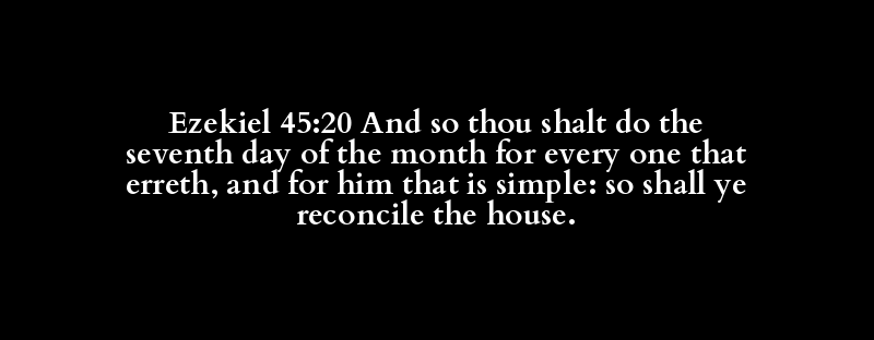 Ezekiel 45:20 And so thou shalt do the seventh day of the month for every one that erreth, and for him that is simple: so shall ye reconcile the house.