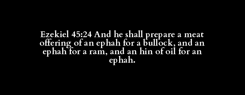 Ezekiel 45:24 And he shall prepare a meat offering of an ephah for a bullock, and an ephah for a ram, and an hin of oil for an ephah.