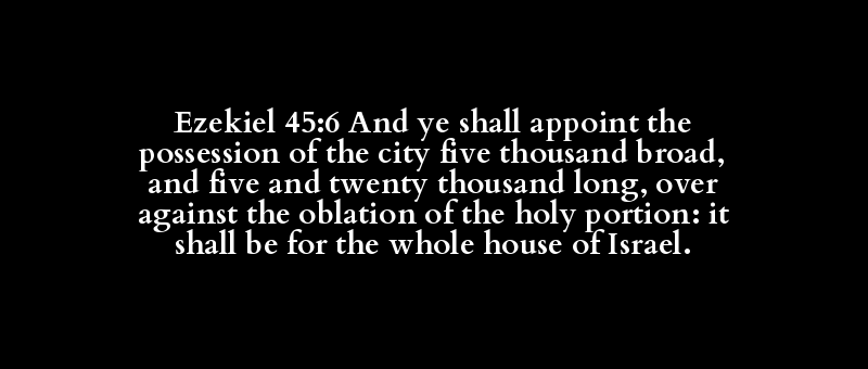Ezekiel 45:6 And ye shall appoint the possession of the city five thousand broad, and five and twenty thousand long, over against the oblation of the holy portion: it shall be for the whole house of Israel.