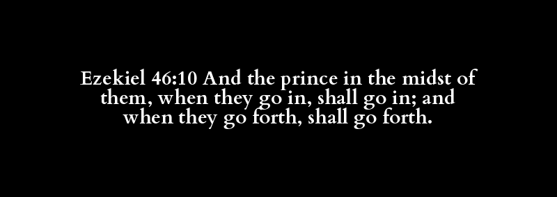 Ezekiel 46:10 And the prince in the midst of them, when they go in, shall go in; and when they go forth, shall go forth.