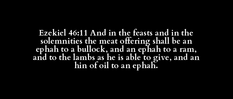 Ezekiel 46:11 And in the feasts and in the solemnities the meat offering shall be an ephah to a bullock, and an ephah to a ram, and to the lambs as he is able to give, and an hin of oil to an ephah.