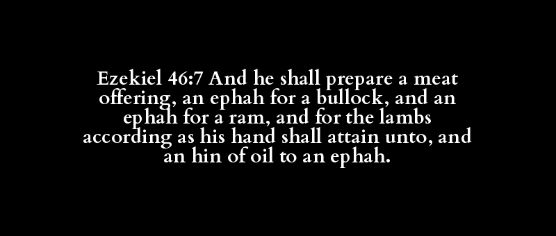Ezekiel 46:7 And he shall prepare a meat offering, an ephah for a bullock, and an ephah for a ram, and for the lambs according as his hand shall attain unto, and an hin of oil to an ephah.