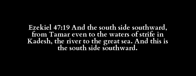 Ezekiel 47:19 And the south side southward, from Tamar even to the waters of strife in Kadesh, the river to the great sea. And this is the south side southward.
