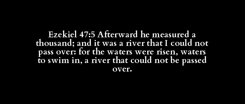 Ezekiel 47:5 Afterward he measured a thousand; and it was a river that I could not pass over: for the waters were risen, waters to swim in, a river that could not be passed over.