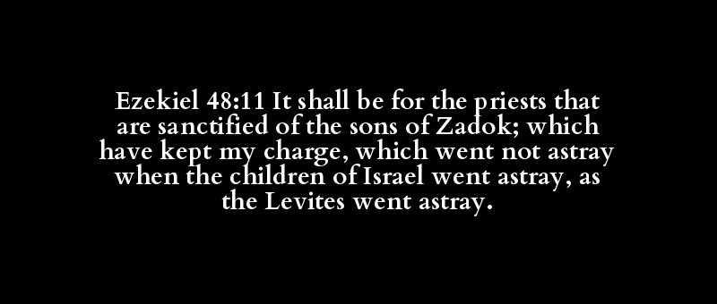 Ezekiel 48:11 It shall be for the priests that are sanctified of the sons of Zadok; which have kept my charge, which went not astray when the children of Israel went astray, as the Levites went astray.