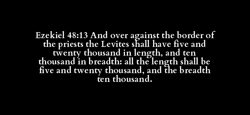 | עֻמָּה | גְּבוּל | כֹּהֵן | לֵוִיִּי | חָמֵשׁ | עֶשְׂרִים | אֶלֶף | אֹרֶךְ | עֶשֶׂר | אֶלֶף | רֹחַב | אֹרֶךְ | חָמֵשׁ | עֶשְׂרִים | אֶלֶף | רֹחַב | עֶשֶׂר | אֶלֶף |
