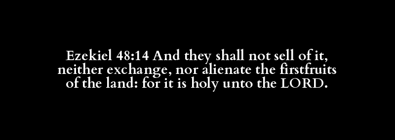Ezekiel 48:14 And they shall not sell of it, neither exchange, nor alienate the firstfruits of the land: for it is holy unto the LORD.