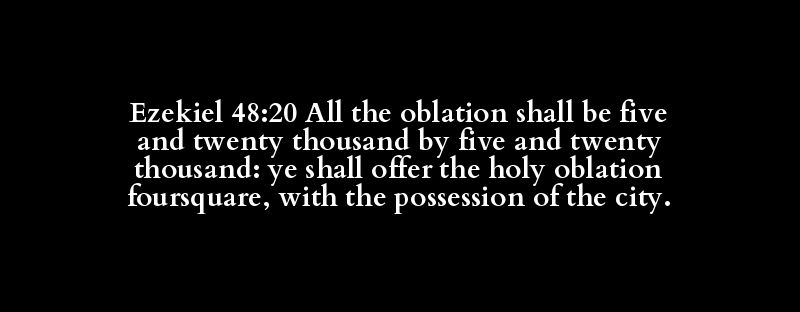 Ezekiel 48:20 All the oblation shall be five and twenty thousand by five and twenty thousand: ye shall offer the holy oblation foursquare, with the possession of the city.