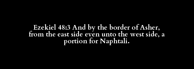 Ezekiel 48:3 And by the border of Asher, from the east side even unto the west side, a portion for Naphtali.