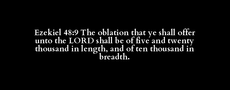 Ezekiel 48:9 The oblation that ye shall offer unto the LORD shall be of five and twenty thousand in length, and of ten thousand in breadth.