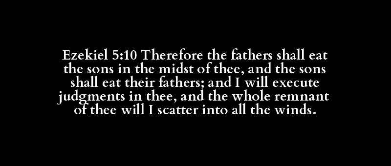 Ezekiel 5:10 Therefore the fathers shall eat the sons in the midst of thee, and the sons shall eat their fathers; and I will execute judgments in thee, and the whole remnant of thee will I scatter into all the winds.