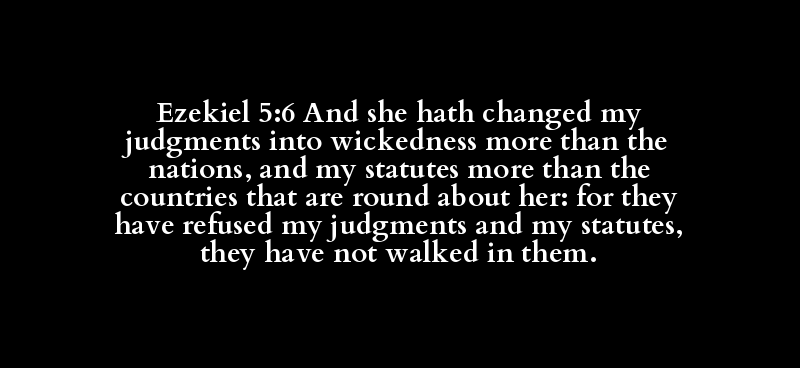 Ezekiel 5:6 And she hath changed my judgments into wickedness more than the nations, and my statutes more than the countries that are round about her: for they have refused my judgments and my statutes, they have not walked in them.