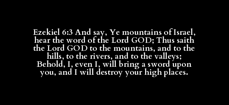 Ezekiel 6:3 And say, Ye mountains of Israel, hear the word of the Lord GOD; Thus saith the Lord GOD to the mountains, and to the hills, to the rivers, and to the valleys; Behold, I, even I, will bring a sword upon you, and I will destroy your high places.