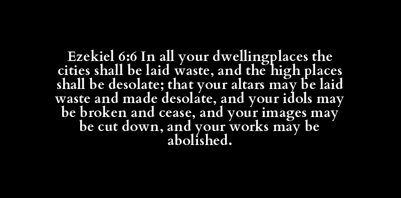 | assembly, dwell in, dwelling(-place), .. | a city/excitement, anguish of terror | decay, (be) desolate, destroy(-er), (b.. | height, high place, wave | be desolate | altar | decay, (be) desolate, destroy(-er), (b.. | × certainly, be(-come) (made) desolate.. | idol | break (down, off, in pieces, up), brok.. | (cause to, let, make to) cease, celebr.. | idol, image | cut (asunder, in sunder, down, off), h.. | act, art, + bakemeat, business, deed, .. | abolish, blot out, destroy, full of ma.. |