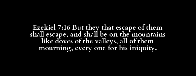 Ezekiel 7:16 But they that escape of them shall escape, and shall be on the mountains like doves of the valleys, all of them mourning, every one for his iniquity.