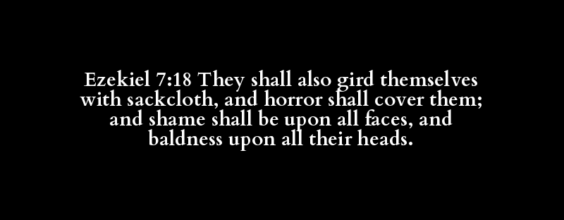 Ezekiel 7:18 They shall also gird themselves with sackcloth, and horror shall cover them; and shame shall be upon all faces, and baldness upon all their heads.