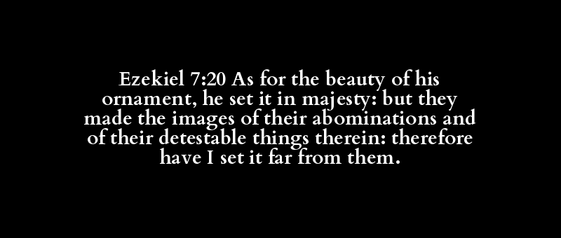 Ezekiel 7:20 As for the beauty of his ornament, he set it in majesty: but they made the images of their abominations and of their detestable things therein: therefore have I set it far from them.
