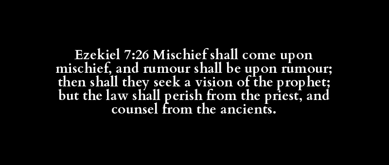 Ezekiel 7:26 Mischief shall come upon mischief, and rumour shall be upon rumour; then shall they seek a vision of the prophet; but the law shall perish from the priest, and counsel from the ancients.