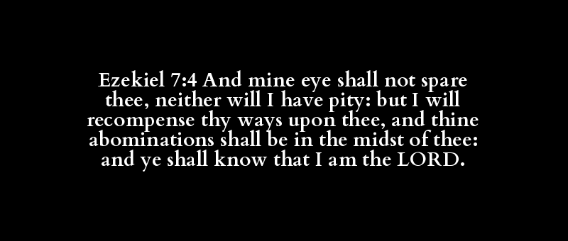 Ezekiel 7:4 And mine eye shall not spare thee, neither will I have pity: but I will recompense thy ways upon thee, and thine abominations shall be in the midst of thee: and ye shall know that I am the LORD.