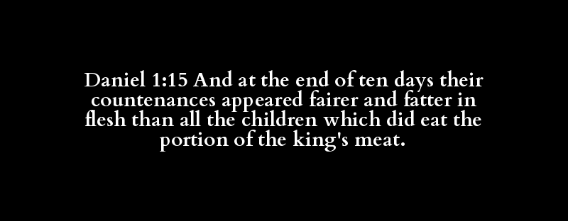 Daniel 1:15 And at the end of ten days their countenances appeared fairer and fatter in flesh than all the children which did eat the portion of the king's meat.