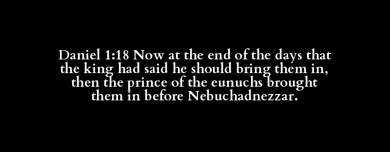 Daniel 1:18 Now at the end of the days that the king had said he should bring them in, then the prince of the eunuchs brought them in before Nebuchadnezzar.