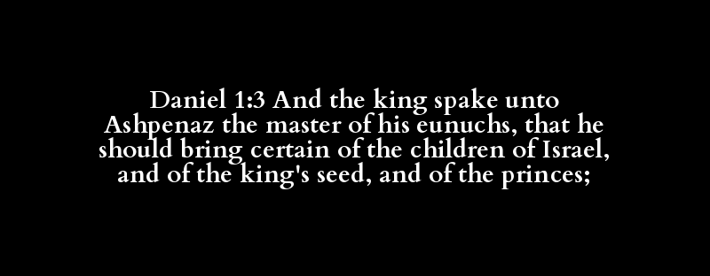 Daniel 1:3 And the king spake unto Ashpenaz the master of his eunuchs, that he should bring certain of the children of Israel, and of the king's seed, and of the princes;